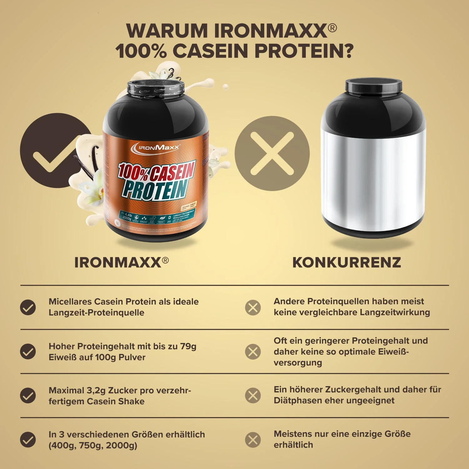 Langsame Eiweißversorgung für die Nacht: Casein Protein liefert hochwertiges Eiweiß mit verzögerter Freisetzung – ideal vor dem Schlafengehen.