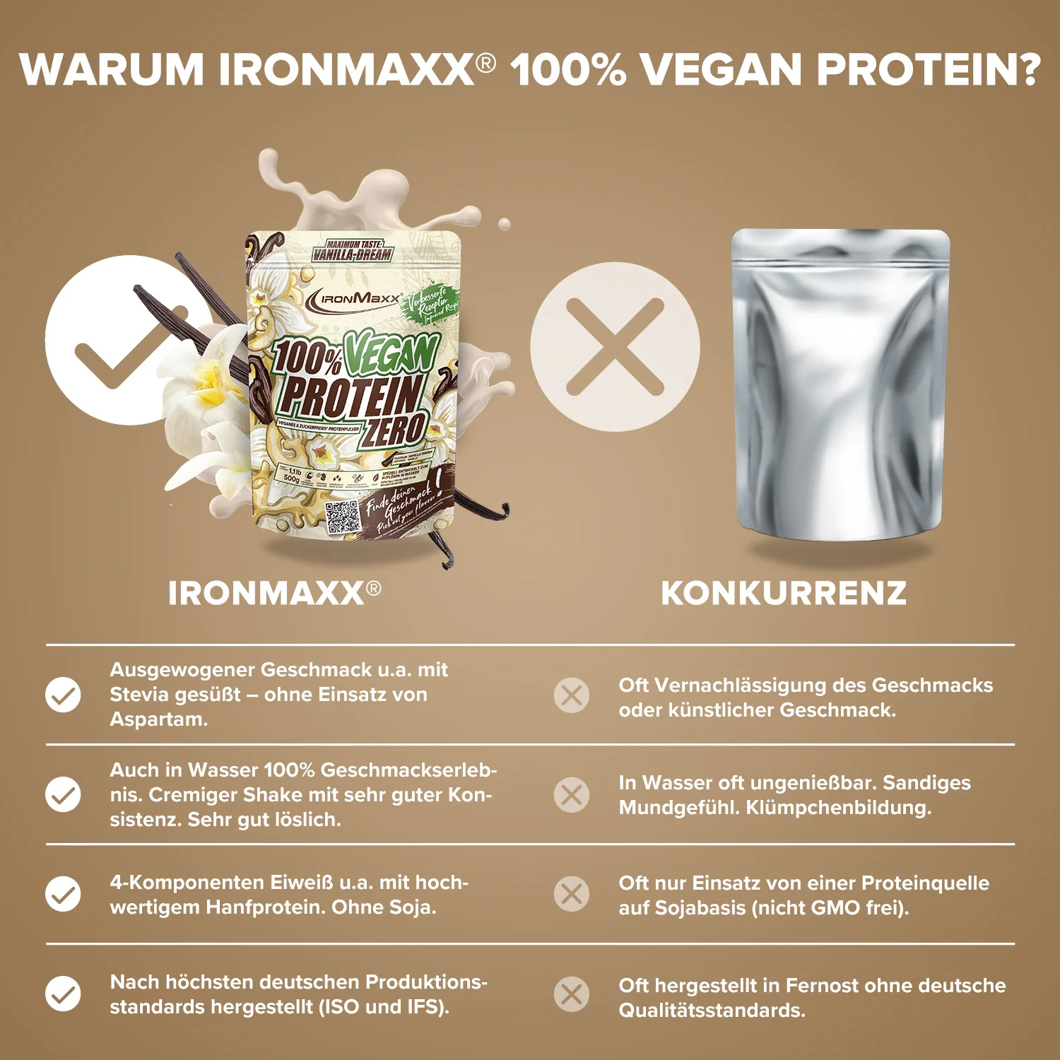 ✓ 4-Komponenten-Protein aus Erbse, Reis, Johannisbrot & Hanf